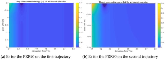Recoverable energy [kJ] maps for an hour of operation of the PRR90 manipulator.