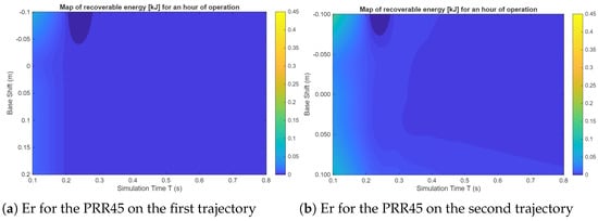 Recoverable energy [kJ] maps for an hour of operation of the PRR45 manipulator.