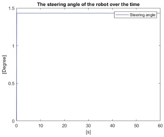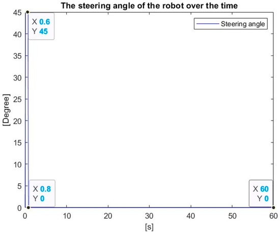 As shown in Figure 18, the steering angle in the robustness test remained the same as that in the simulation steering graph without the robustness test. This adaptation of the speeds demonstrates the robot’s ability to adapt to changes while maintaining its path-following performance.