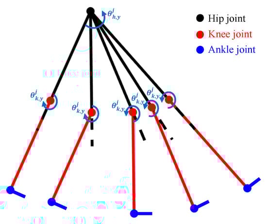 The kinematic structure of legs is usually considered one of the most defining features in the design of humanoid robots. Many humanoid robots, including ASIMO [22], HUBO [23], and TALOS [4], adopt a full anthropomorphic body morphology, with their robotic legs sharing similar kinematics structures. These legs typically feature a three-DoF hip joint, a one-DoF knee joint, and a two-DoF ankle joint. Based on this idea and the basic models of human lower-limb kinematics (e.g., as presented in [1]), a six-DoF model is usually considered adequate to approximate the mobility and functionality of a human leg. This six-DoF kinematic structure also offers the advantage of facilitating a closed-form solution for inverse kinematics [24].