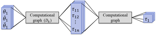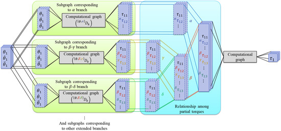 Figure 1 shows a conceptual diagram of a dynamics analysis based on Lagrange’s equation, using a computational graph. While the final computational complexity is the same as that of the Lagrangian equations, organizing them as partial torques allows the computational graph of the partial torques to be parallelized [