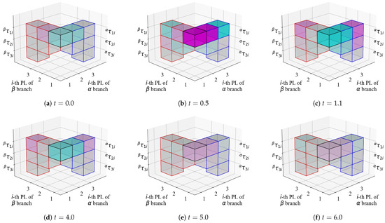 Here, the left superscript indicates the branch that must be appropriately determined from the tensor structure (link structure). In the case of building block representation, it is possible to determine geometrically whether the blocks are connected. If there is no bifurcation, such as , no subscript is present. However, the forces from all branches are concentrated at this joint. For each branch of and , we must show the branching structure as , which can be considered independent because there are no nonlocal interacting forces.