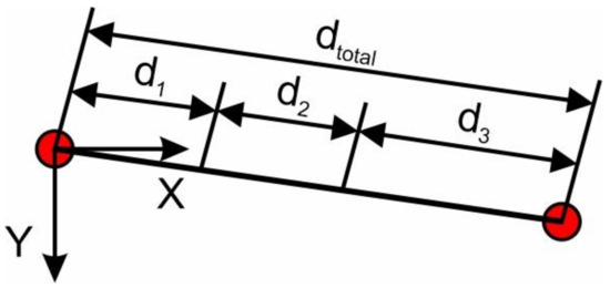 During the time change interval, changes may occur in the existence of dynamic obstacles or the robot’s speed. These changes are determined by considering a temporary variable of the current time. The temporary time variable represents how long the robot needs to travel the distance between the two points. It takes into account that different lengths of the path may be traveled at different numerical values of speed. In this way, the numerical value of the current time variable is calculated more accurately. A simplified example of the temporary time variable is shown in Figure 4.