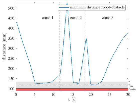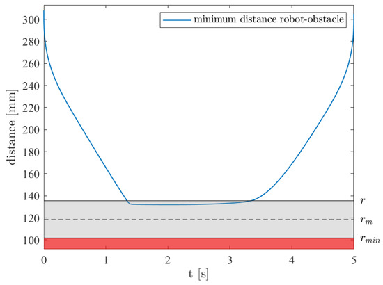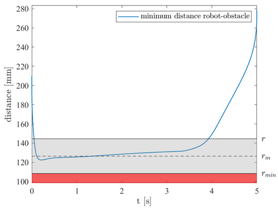 Example 3: minimum robot–obstacle distance for the motion shown in Figure 18.