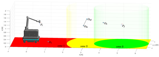 In Section 3.3, current standards are taken into account to show a case study in which the system has to travel a long distance to reach a predetermined destination while avoiding obstacles located along the trajectory. This scenario is divided into three operational zones: