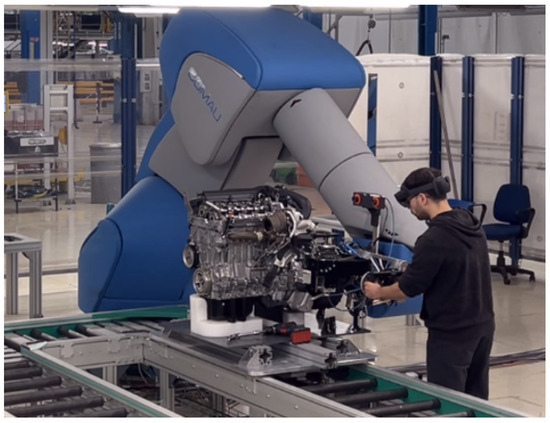 Another key aspect of the deployment of robotics on assembly lines is the human-robot interaction. The employment of displays and standard devices is impractical in assembly lines due to the interference caused in the process. To overcome this issue, the employment of wearable devices significantly decreases this interference, allowing the implementation of new paradigms like augmented reality. In this sense, the automotive industry has been a recurrent testbed of this kind of technology [13]. Michalos et al. [14] propose the combination of high-payload industrial robots with human capabilities under a fenceless environment, validating the approach in two automotive scenarios, the loading of the rear axle and the assembly of the two-wheel groups. Wulff et al. [15] apply augmented reality for iterative robot program optimization in robot-automated series production, showing the viability of the approach in sealing application operations.