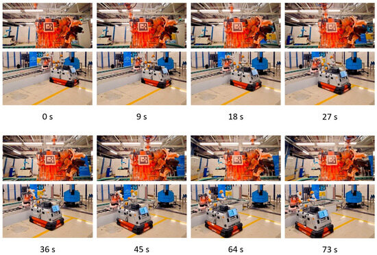 Based on the previously presented hardware and software specifications, the autonomous mobile platform can fasten the screws of the engine while it is transported along a conveyor at a speed of 100 mm/s as shown in Figure 6. This approach represents an advancement in two key aspects of future assembly lines: The capability to automate assembly tasks on moving parts and the reduction of mental strain on operators following the Industry 5.0 premises.
