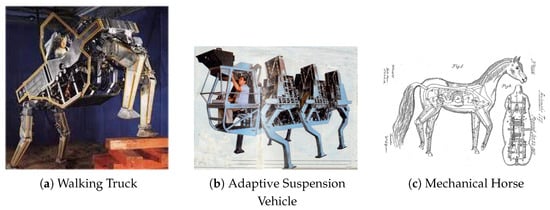 In the early 1980s, interest in legged robots grew with projects such as the Adaptive Suspension Vehicle (ASV) [36] (see Figure 1b) developed at Ohio State University. While the ASV was a six-legged robot, it contributed valuable insights into legged locomotion and control strategies that would influence future quadruped designs. Another notable example from this period is the Mechanical Horse [37] (see Figure 1c), which showcased basic walking mechanisms.