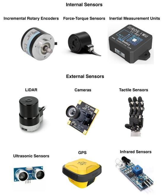 - Sensing aggregates internal feedback (encoders, IMUs, force/torque sensors) with external perception (RGB-D cameras, LiDAR) to estimate state and terrain.