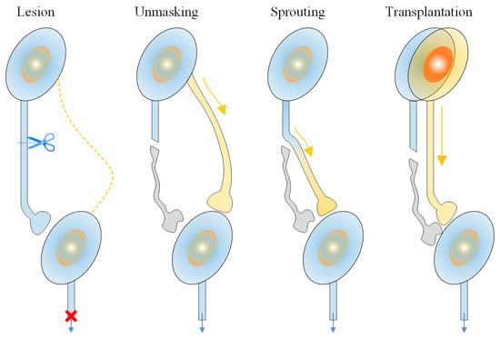 As early as the beginning of the 20th century, scientists recognized that certain areas of the brain and spinal cord possessed a high degree of adaptability, although at that time, this adaptability was mainly limited to the restoration of basic functions [7]. This awareness led to the gradual development of rehabilitation techniques and methods for motor dysfunction after stroke, such as Bobath Neurodevelopmental Therapy and Brunnstrom Movement Therapy [8]. In the field of motor neuron rehabilitation, the concept of neuroplasticity was introduced [9,10]. Neuroplasticity includes various forms of regeneration in central nervous pathways, regeneration of damaged nerve axons, and compensation by the central nervous system [11]. A schematic diagram of neuroplasticity is shown in Figure 2.