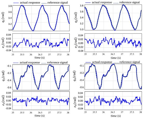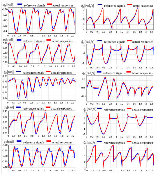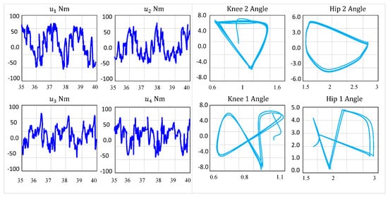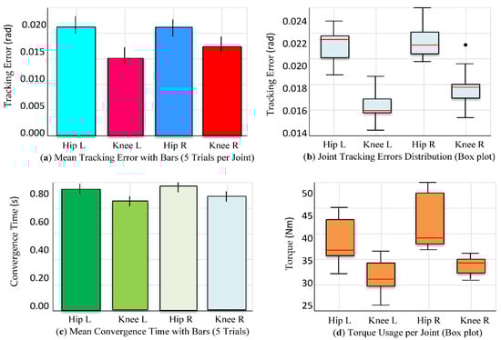 These results confirm the superiority of the proposed controller in terms of stability, adaptability, and resilience to real-world disturbances. This contribution not only advances adaptive control theory for underactuated systems but also demonstrates practical applicability for field-deployable humanoid robots in uncertain environments. Compared to existing approaches such as classical nonlinear decoupling [19], finite-time control [23], neural fuzzy logic [39], deep reinforcement learning-based methods [40], and recent adaptive neural controllers [56,57], our method exhibits faster convergence, better disturbance rejection, and improved real-time adaptability. While earlier works often focused on specific performance criteria in isolation (such as tracking accuracy, adaptability, or robustness), our framework unifies these objectives into a single control strategy. This hybrid neural–adaptive approach is specifically designed to handle underactuation, impact dynamics, structural uncertainties, and external disturbances in a cohesive and experimentally validated manner.