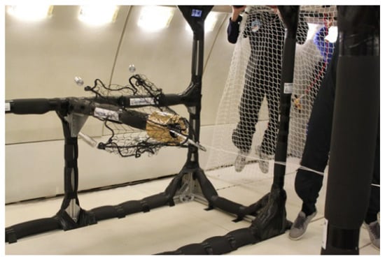 The European Space Agency (ESA) proposed the “RemoveDEBRIS” project, which tested various innovative space debris removal technologies, including net capture and harpoons, as shown in Figure 3 and Figure 4. These technologies have achieved preliminary results in laboratory and orbital simulation environments [6], but challenges remain in capturing fast-moving, tumbling debris in real orbital environments, particularly under multitarget dynamic coordination scenarios.