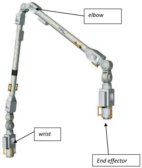 In addition to mission-specific robotic arms developed for active debris removal, general-purpose space manipulators also provide valuable insights. One representative example is the European Robotic Arm (ERA), developed by ESA for space station servicing tasks such as payload transfer and maintenance (see Figure 5). Although the ERA was not originally designed for high-speed debris capture, its symmetrical structure, high payload capacity, and multi-DOF configuration demonstrate engineering principles that are potentially transferable to future on-orbit debris handling systems [13].