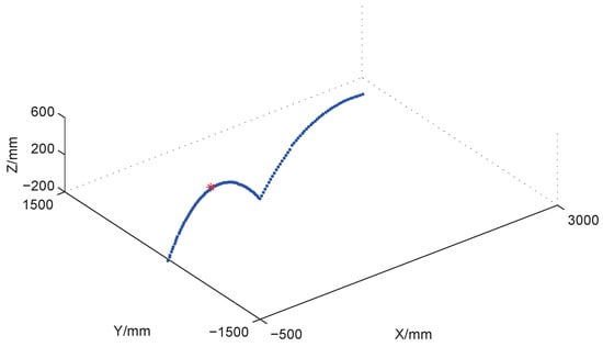 A sample trajectory and the predicted result. The dashed points are trajectory points, and the star is the predicted hitting point [19].