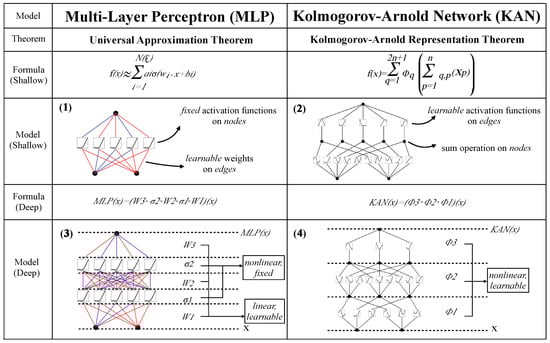 - Liu, Z.; Wang, Y.; Vaidya, S.; Ruehle, F.; Halverson, J.; Soljačić, M.; Hou, T.Y.; Tegmark, M. Kan: Kolmogorov-arnold networks. arXiv 2024, arXiv:2404.19756. [Google Scholar]