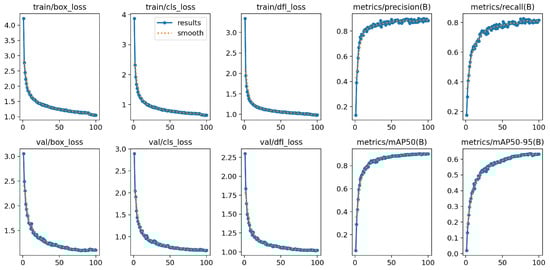 In the head, YOLOv8 separates classification and regression into decoupled branches. The classification branch uses binary cross-entropy (BCE) loss, and the regression branch uses distribution focal loss (DFL) [41] combined with CIoU loss. YOLOv8 employs the TaskAligned Assigner [42] to dynamically assign positive samples by calculating a joint alignment score: