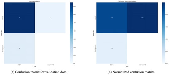 Another important aspect concerns image degradation under realistic space conditions, such as haze, glare, or motion blur, which can impair detection accuracy. Future work will explore the integration of image enhancement and dehazing techniques, including contrast adjustment and restoration-based methods, to preprocess raw sensor inputs. This preprocessing step could mitigate visual distortions and provide clearer inputs for the detection model, thereby improving recognition reliability under degraded visual conditions.