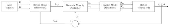 The proposed methodology is a closed-loop velocity control scheme in which the reference system provides target velocities to be followed by the simulated model. The complete flow is represented as shown in Figure 5.