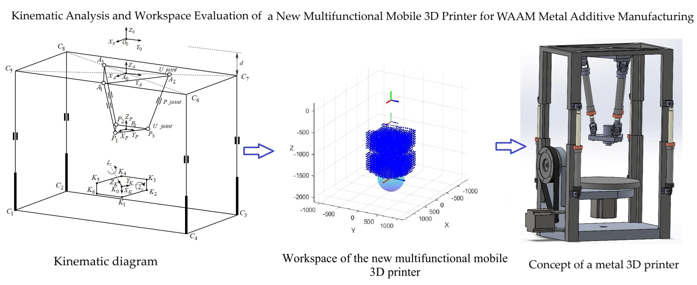 Mustafa A, Kaiyrov R, Nugman Y, Sagyntay M, Albanbay N, Zhauyt A, Turgunov Z, Dyussebayev I, Lei Y. Kinematic Analysis and Workspace Evaluation of a New Five-Axis 3D Printer Based on Hybrid Technologies. Robotics. 2026; 15(1):16. https://doi.org/10.3390/robotics15010016