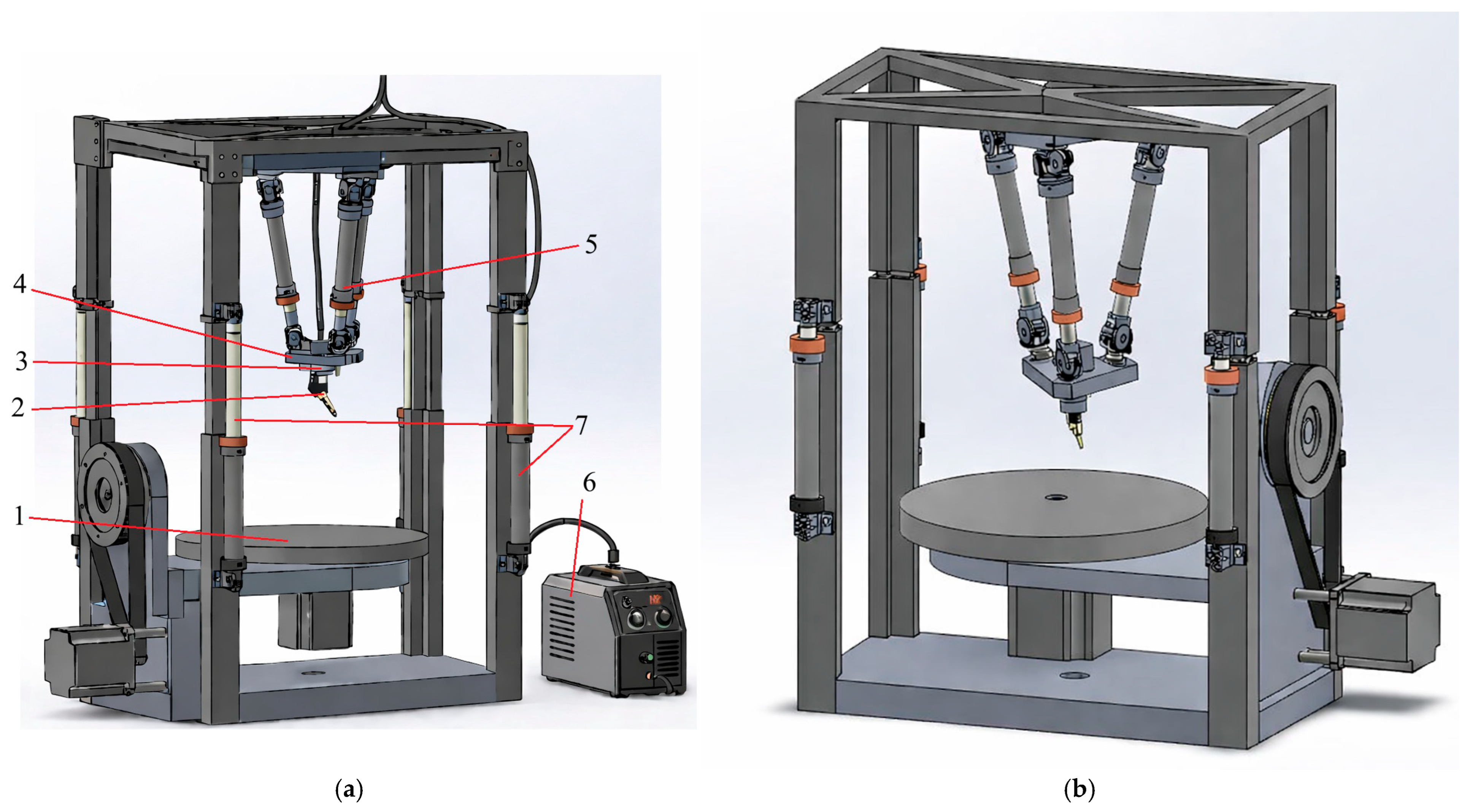 3.2. Workspace of the Multifunctional Mobile 3D Printer for Metal Printing