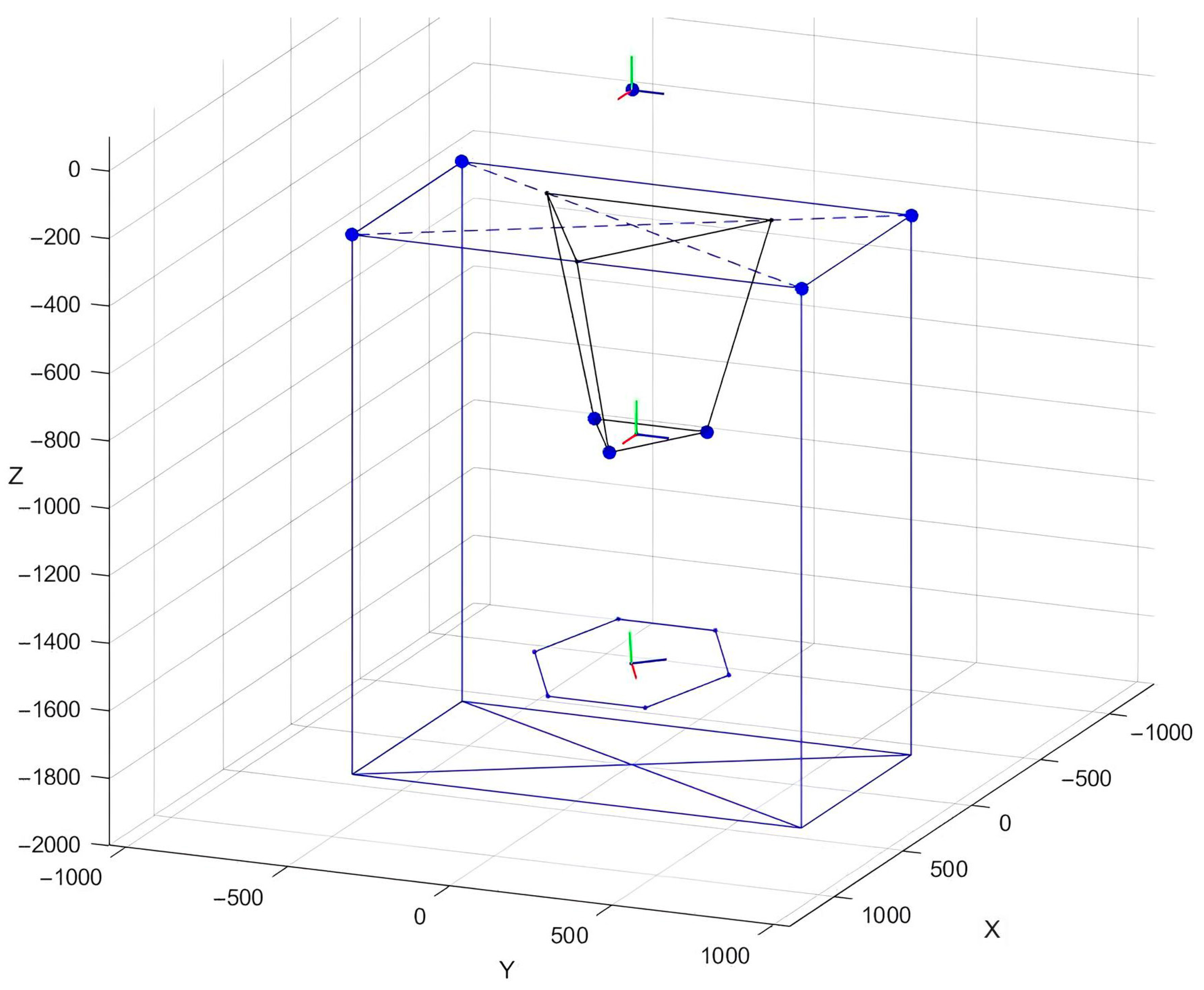 - Tsai, L.W.; Joshi, S. Kinematics and optimization of a spatial 3-UPU parallel manipulator. J. Mech. Des. 2000, 122, 439–446. [Google Scholar] [CrossRef]