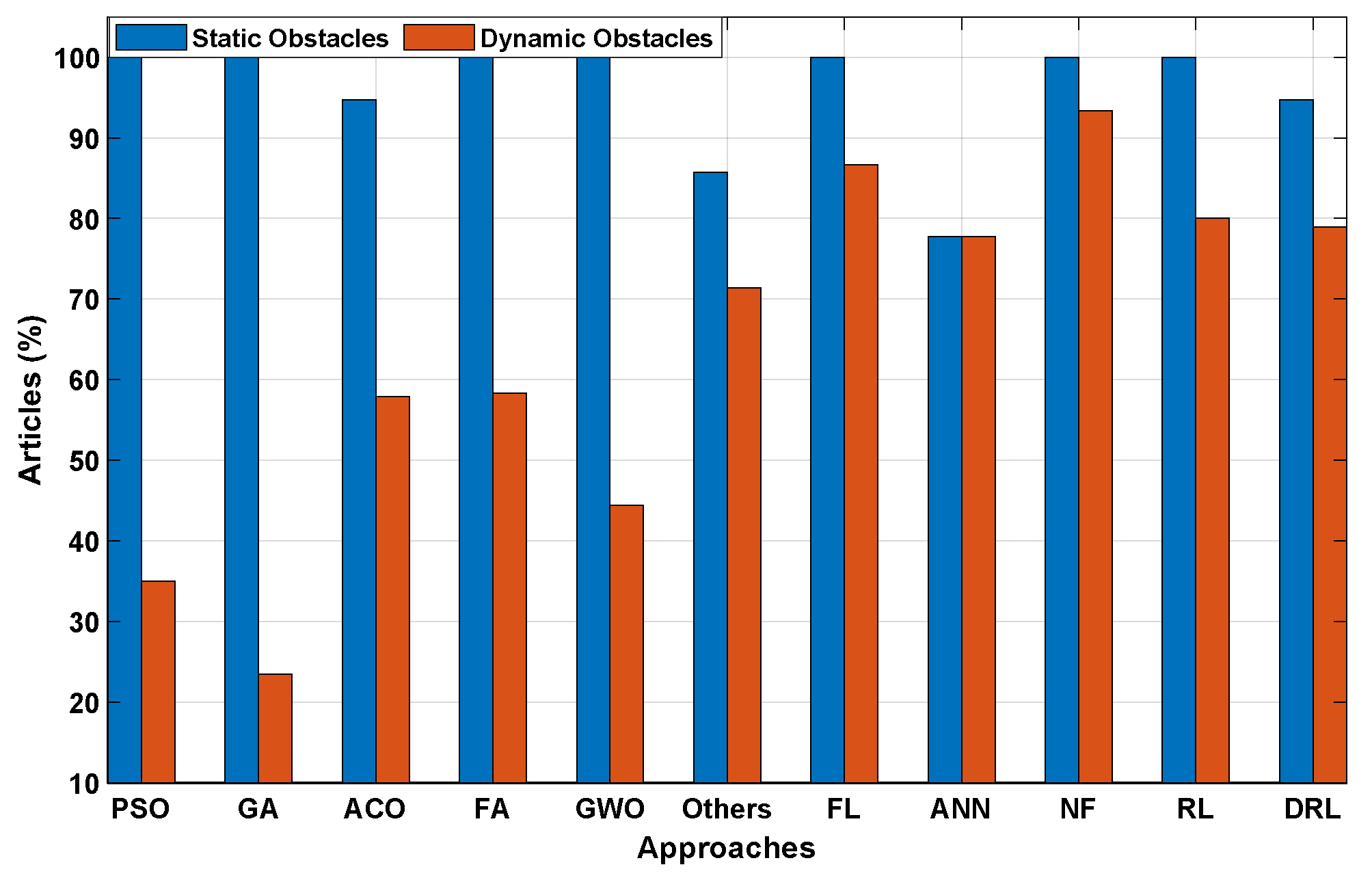 | [182] | 2025 | Hybrid A*–DWA–ANFIS PID controller | Ground vehicle | Faster convergence (0.038s vs. 0.052–0.075 s); efficient dynamic obstacle handling |