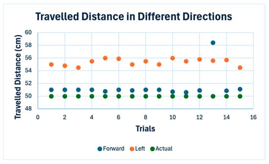 Figure 14. Measured travel distances for the robot’s lateral and forward movements.
