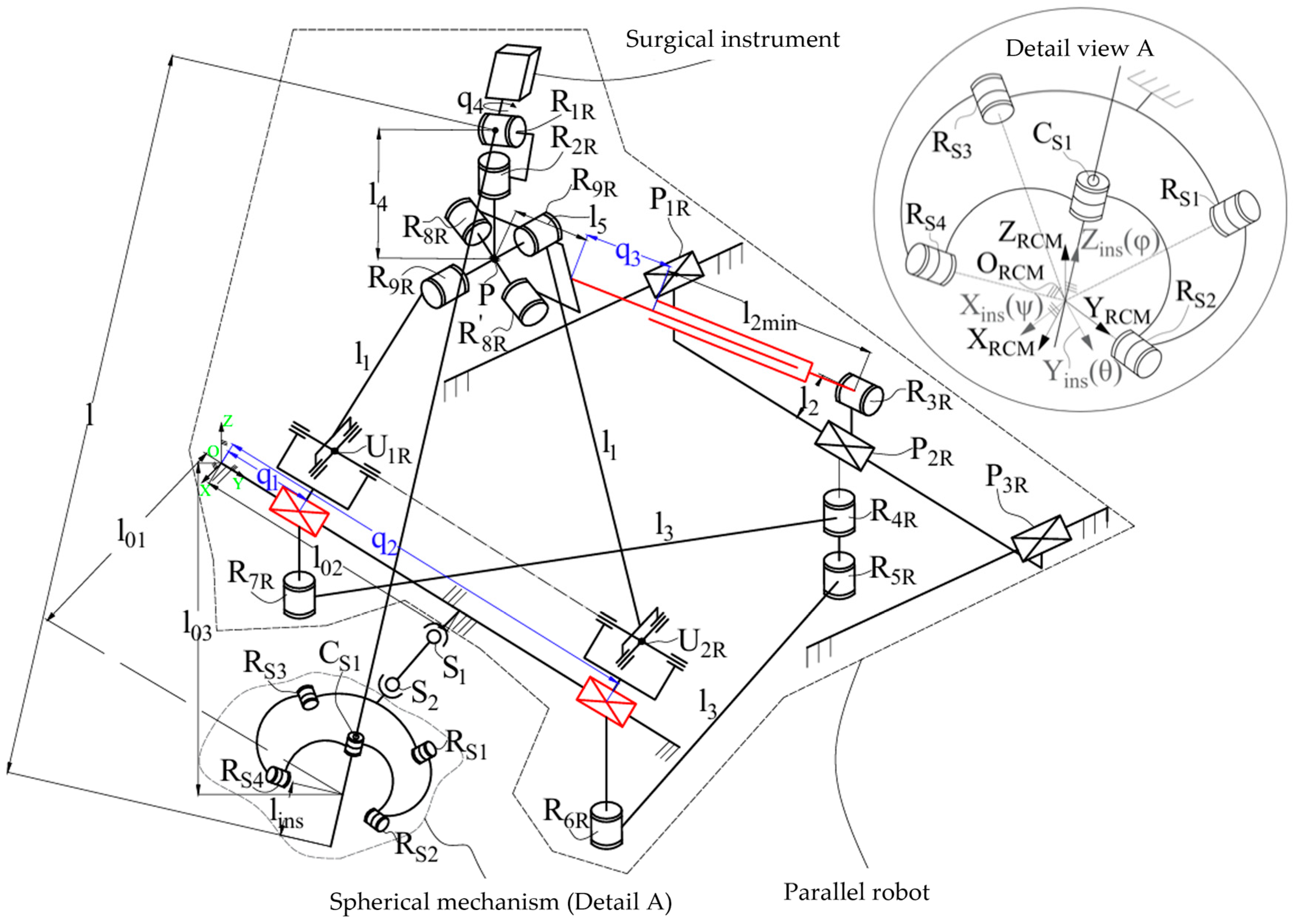 - Pusca, A.; Covaciu, F.; Burz, A.; Horsia, A.; Mougenot, P.; Pisla, A.; Nagy, J.; Pop, N.; Zima, I.; Chablat, D.; et al. Development of an innovative parallel robot used in laparoscopic pancreatic surgery. In Proceedings of the 14th IFToMM International Symposium on Science of Mechanisms and Machines, Brasov, Romania, 23–25 October 2025; Springer: Cham, Switzerland, 2025. [Google Scholar]