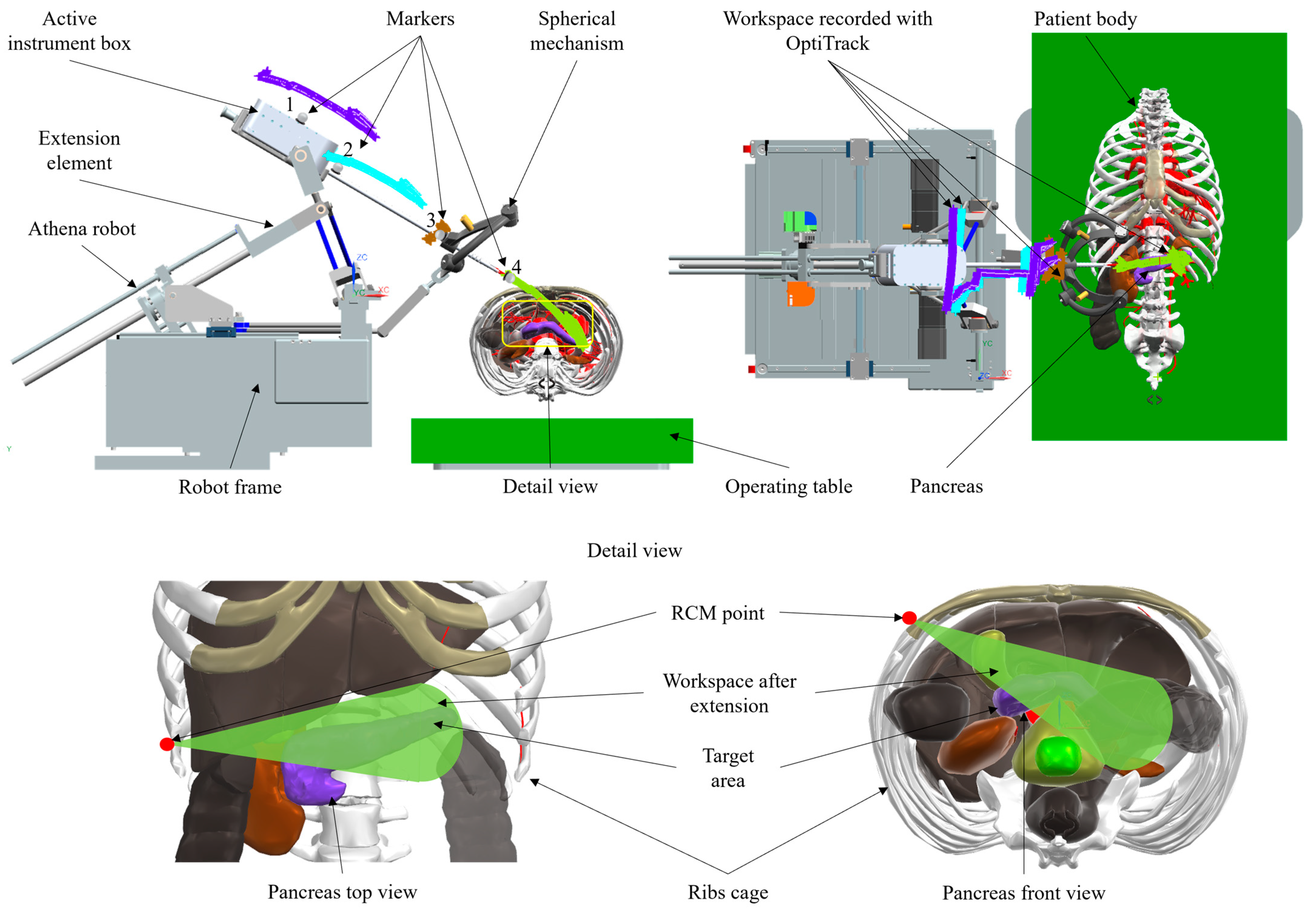 - Pisla, D.; Pusca, A.; Caprariu, A.; Pisla, A.; Gherman, B.; Vaida, C.; Chablat, D. Design analysis of an innovative parallel robot for minimally invasive pancreatic surgery. In International Workshop on Medical and Service Robots; Springer Nature: Cham, Switzerland, 2025; pp. 466–476. [Google Scholar] [CrossRef]