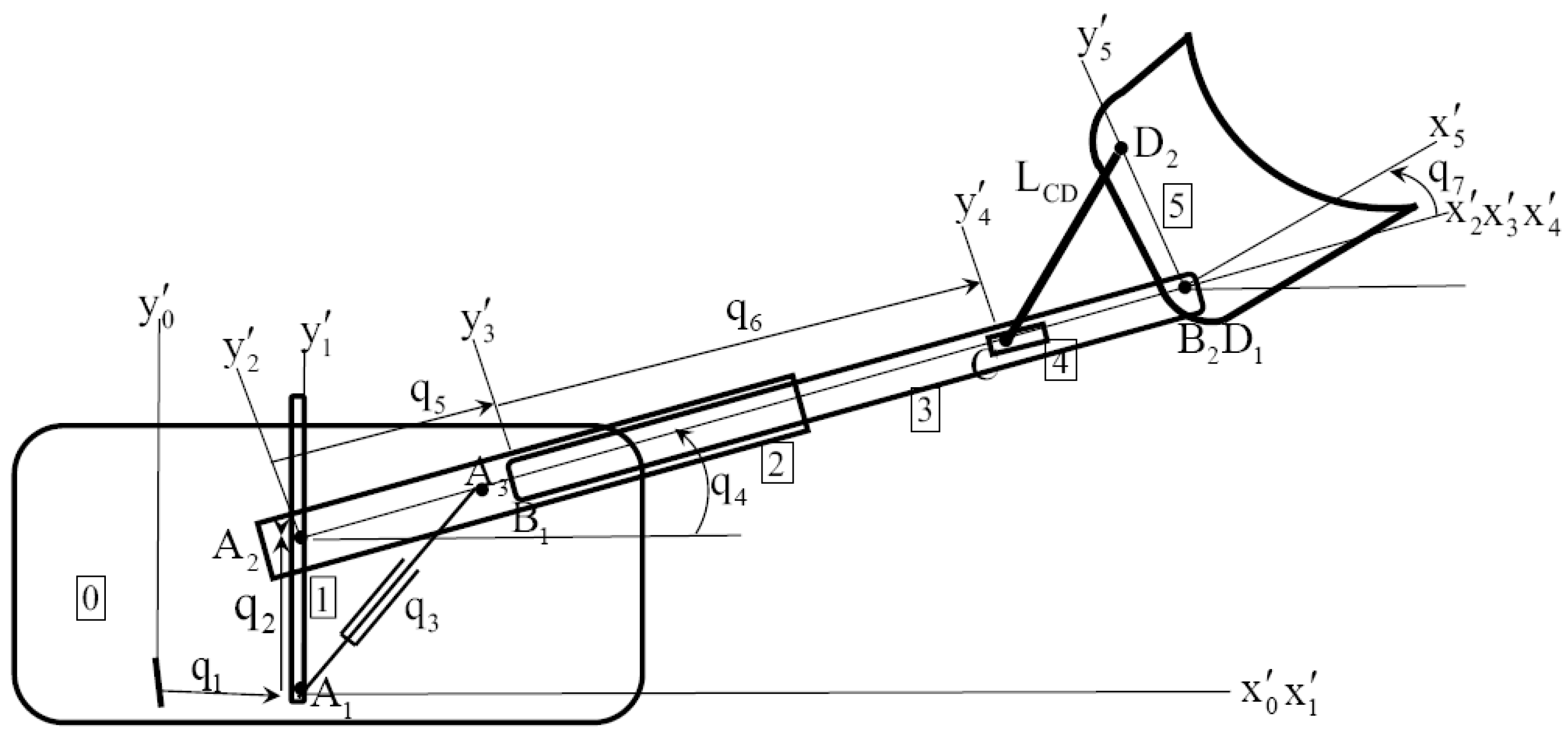 - bodies 0, 1, and 2, and slider that define the length of actuator , which is not contained in a joint;