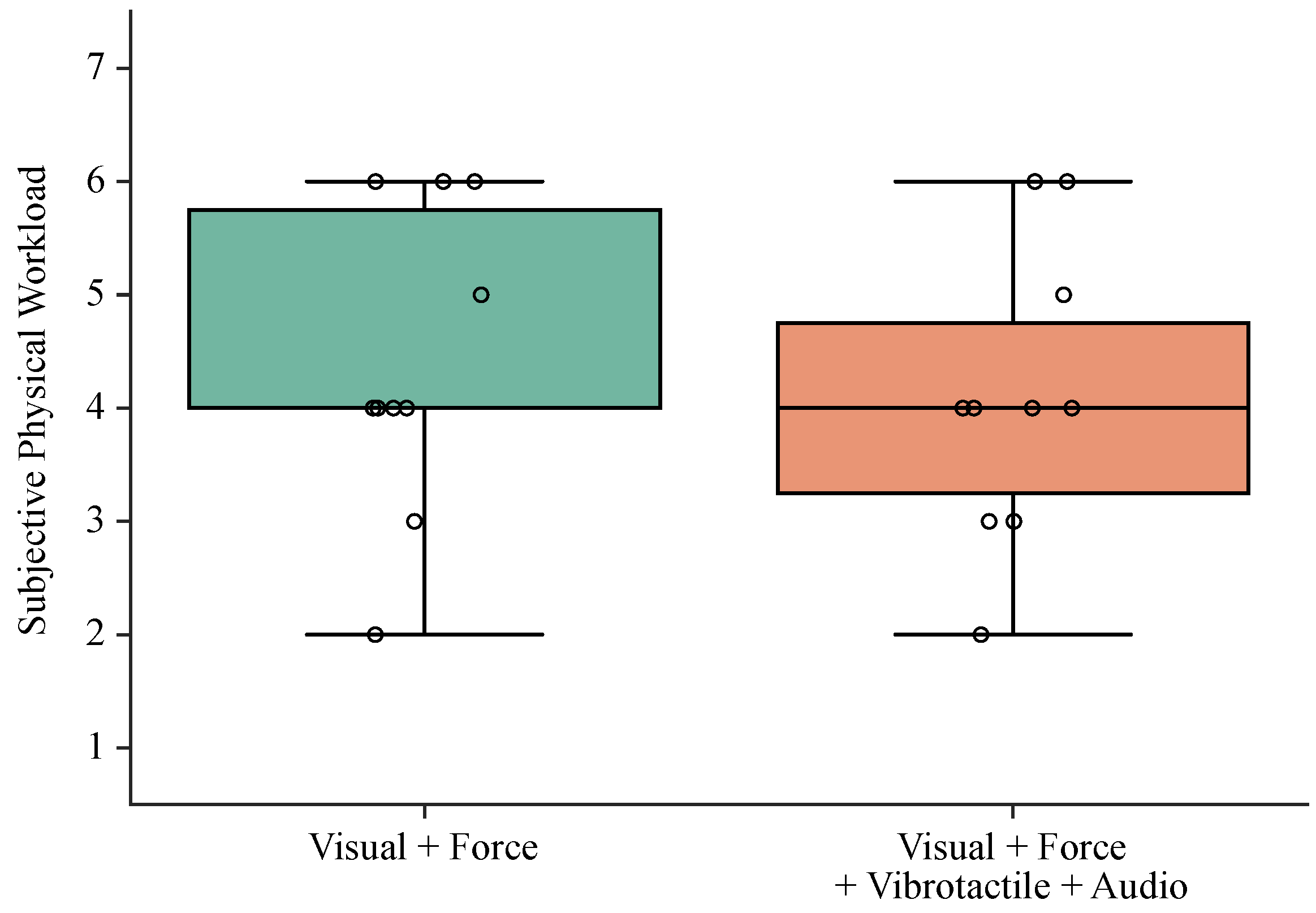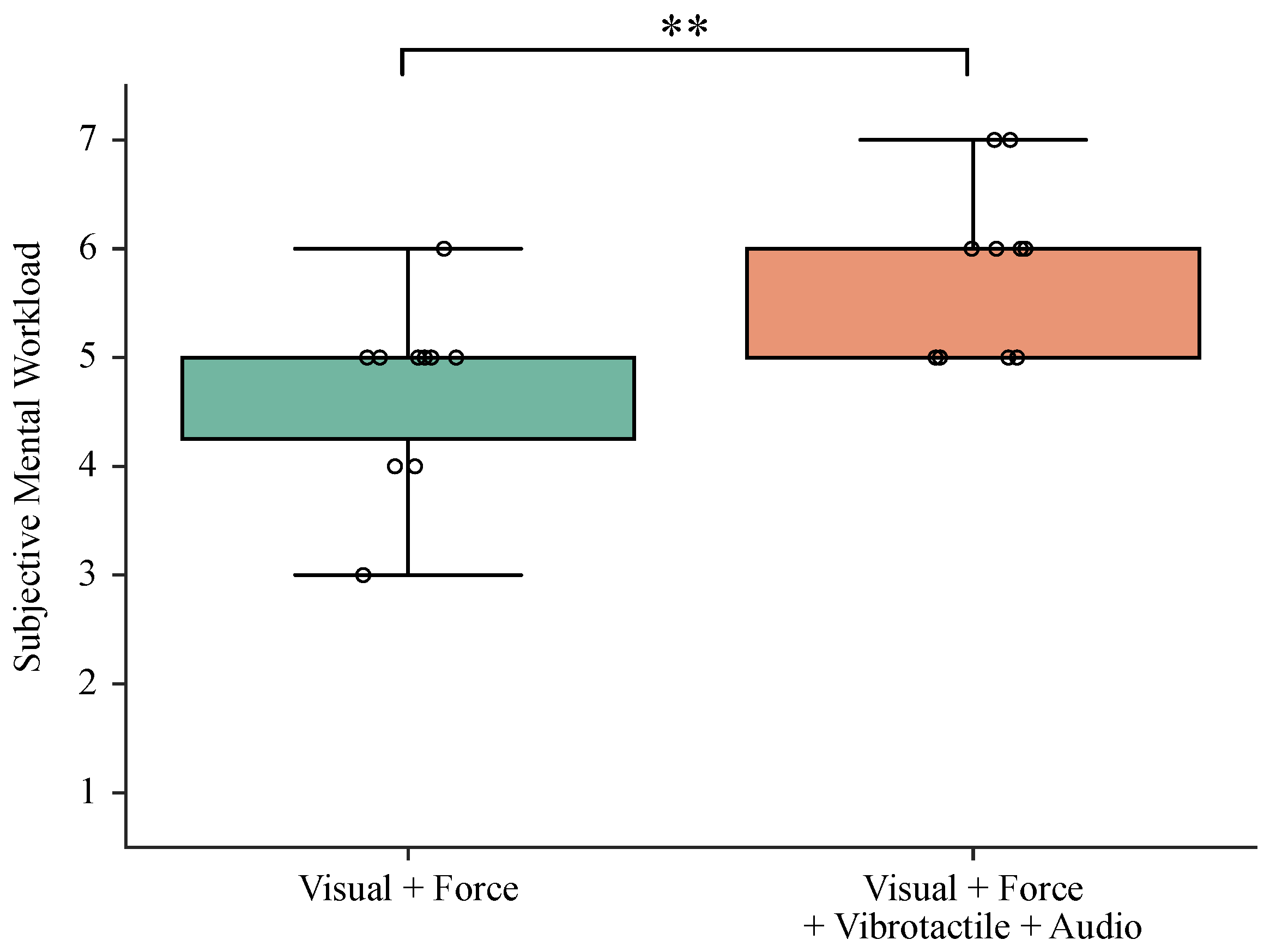 - Safety vs. Mental Workload Trade-off: While the proposed feedback enhances physical safety by significantly reducing post-mating contact forces, it imposes a higher mental workload on the operator due to the cognitive demand of sensory integration.