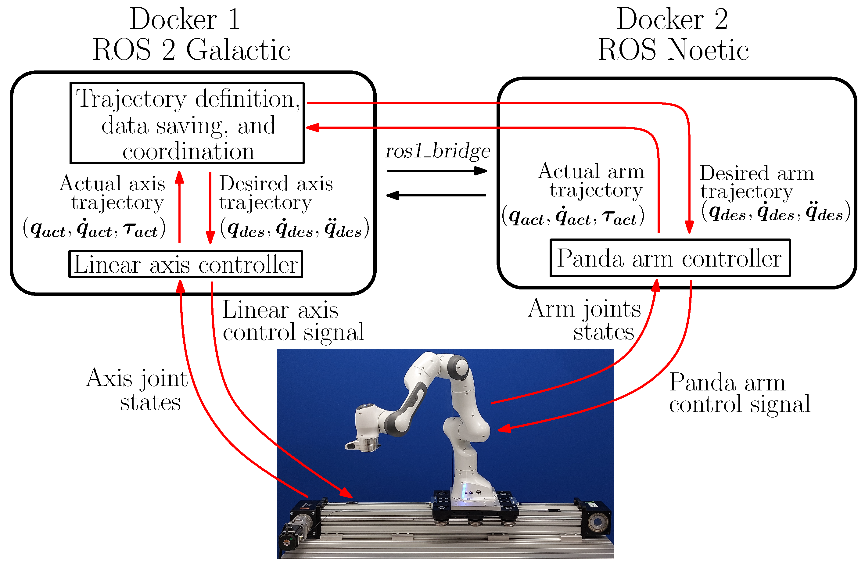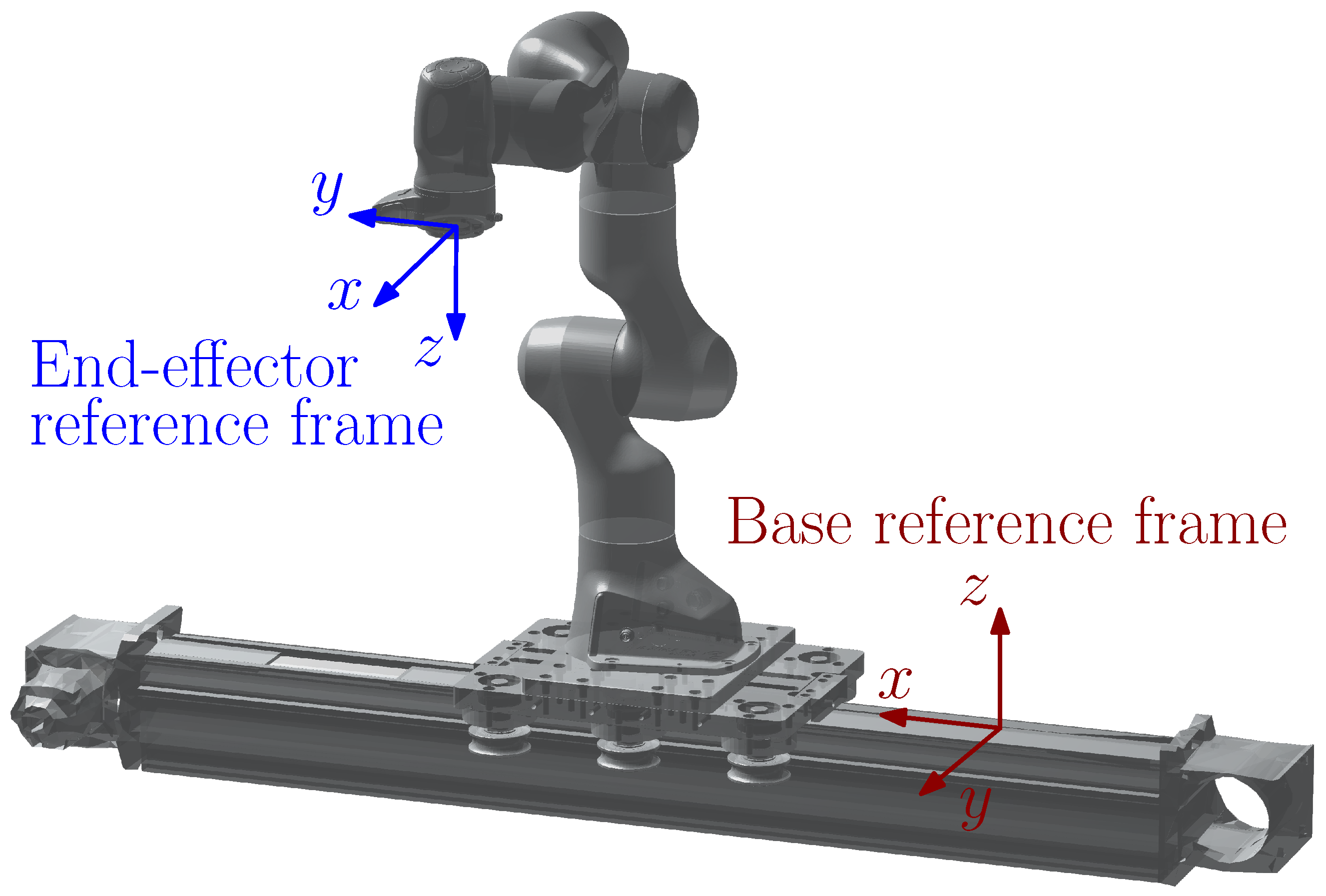 In the second case study, we consider a robotic system composed of a Panda arm mounted on a linear axis, shown in