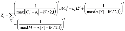 to oi, and the projection of the resultant potential in the Y axis is considered. M is the road width. The sources of potential are explained in Figure 2(d).