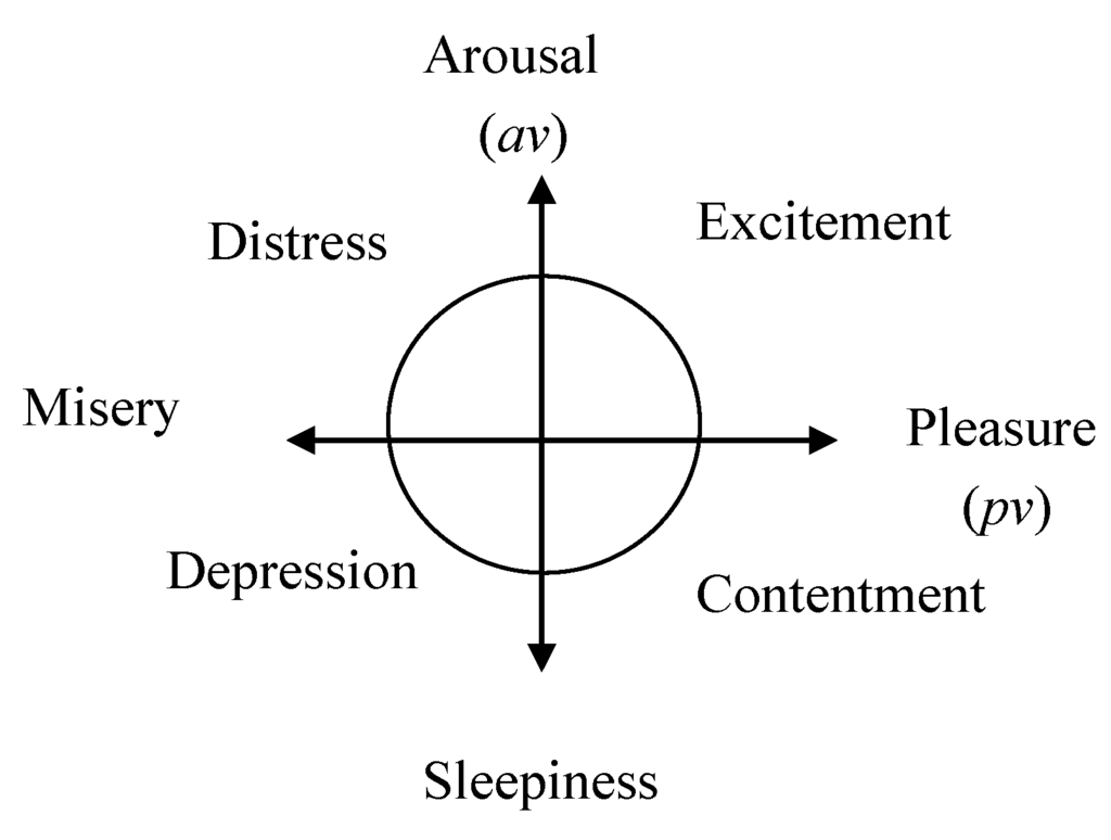 - Russell, J.A. A circumplex model of affect. J. Personal. Soc. Psychol. 1980, 39, 1161–1178. [Google Scholar] [CrossRef]