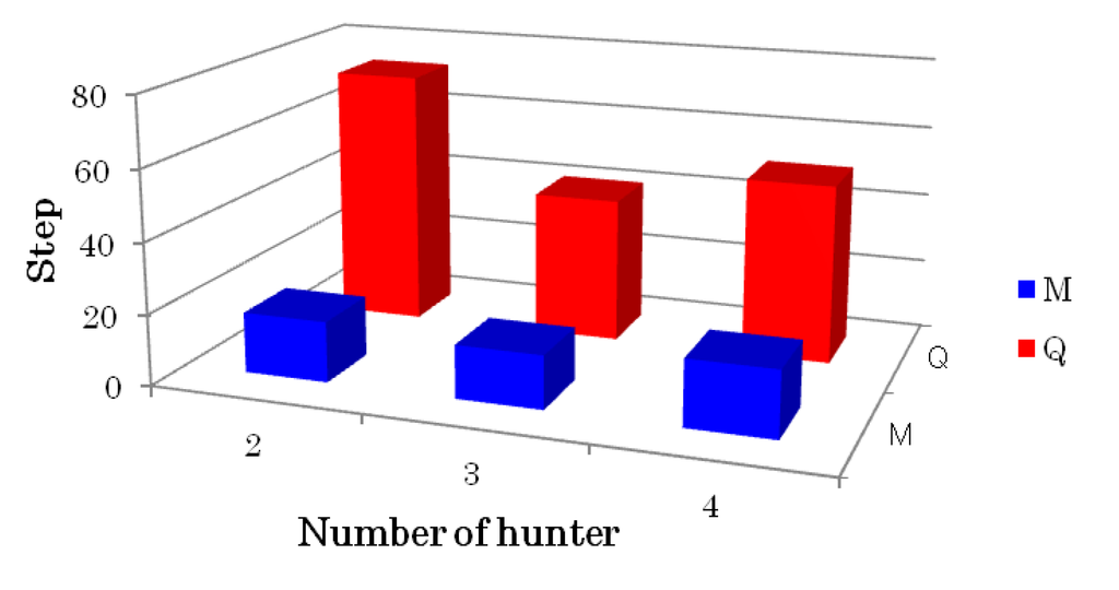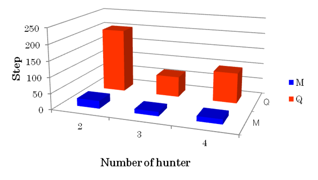 | Number of hunter | Q learning (QL) | Proposed model (DEM) |