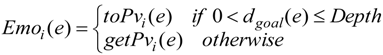 - Rule A: Pleasure pvi(e) concerns with the distance between the agent i, i ∈ {1,2,…,N} and the goal (Equation (5)) if the situation e means that the goal is perceived .