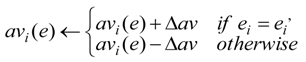 - Rule C: Emotion state Emoi(e) (Equations (1–3)) of agent i in the eliciting situation e is expressed by the multiplication of Pleasurepvi(e) or pvj(e) (Equation (5)) and Arousal avi(e) or avj(e) (Equation (4)).