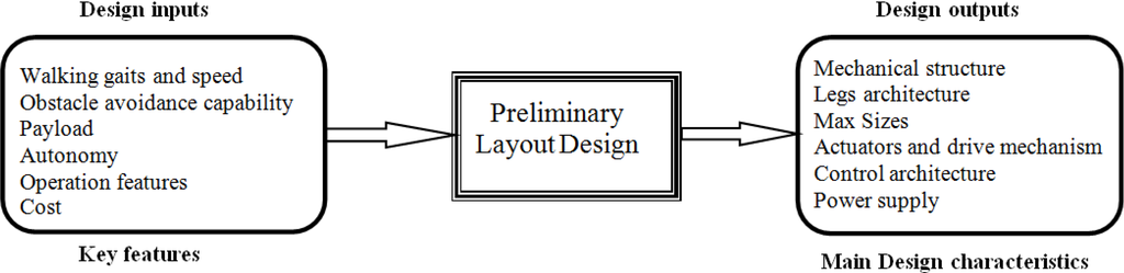A preliminary design is often a trade-off solution between design requirements and key features. Possible aids for the preliminary design process can be given by the Quality Function Deployment [49] in order to define the relationship between the design configuration and the robot capabilities or requirements. Based on this approach, we propose a novel simplified procedure that can be used to relate and prioritize preliminary layout design to key features through numerical ranking.