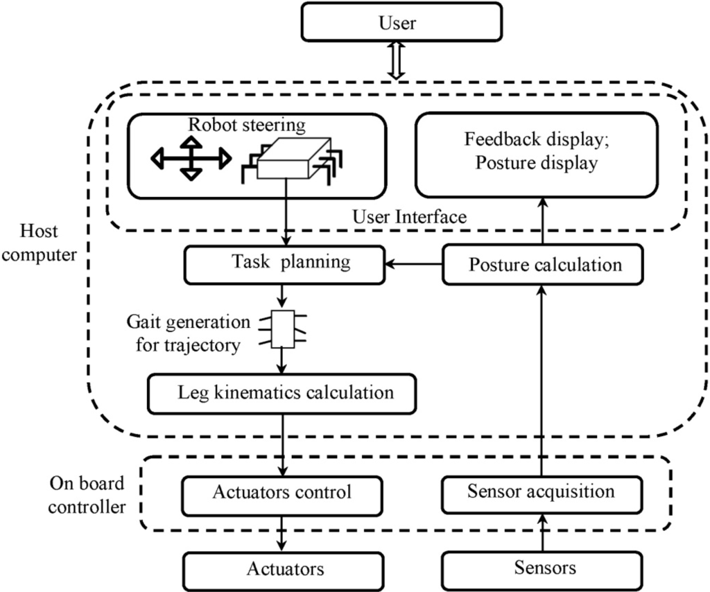 The first hexapods can be identified as robots based on a rigidly predetermined motion so that an adaptation to the ground was not possible. Early researches in the 1950s were focused on assigning the motion control completely by a human operator manually [11].