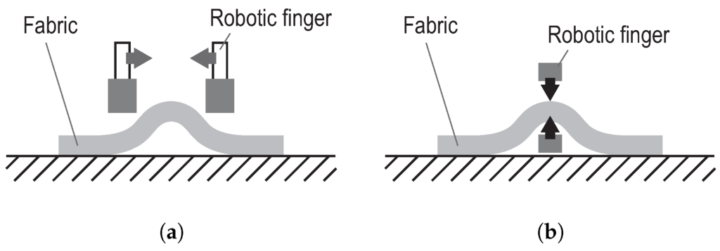 Pinching of a fabric by robotic fingers. (a) With one side of the surface; (b) With both sides of the surface.