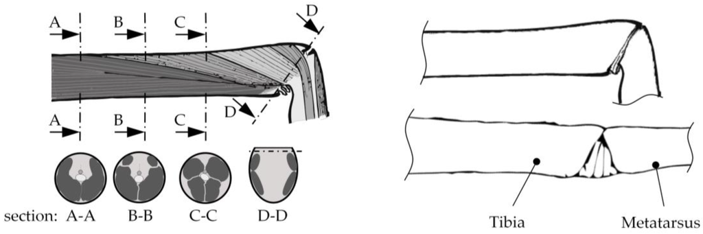 Cross section view of a tibial segment of a spider leg. Sketches according to [24].