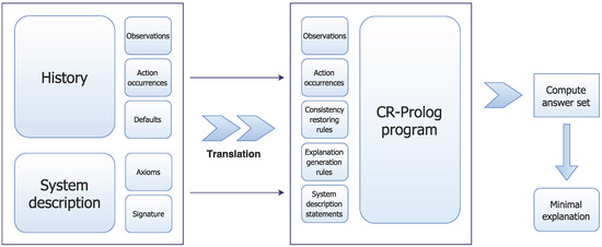 - Balduccini, M.; Gelfond, M. Diagnostic Reasoning with A-Prolog. Theory Pract. Log. Program. 2003, 3, 425–461. [Google Scholar] [CrossRef]