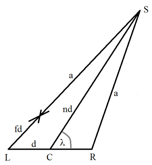 A straight line simplification of the relationship between arrival time difference, angle to source, and range is illustrated in Figure 1. A more elaborate model might allow for diffraction around the head to reach the more distant ear [19,47].