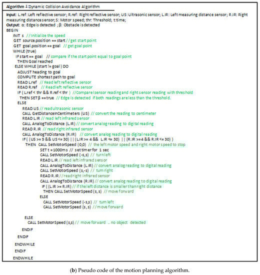 - Ullah, I.; Ullah, Q.; Ullah, F.; Seoyong, S. Integrated collision avoidance and tracking system for mobile robot. In Proceedings of the IEEE Robotics and Artificial Intelligence (ICRAI), Islamabad, Pakistan, 22–23 October 2012; pp. 61–67. [Google Scholar]