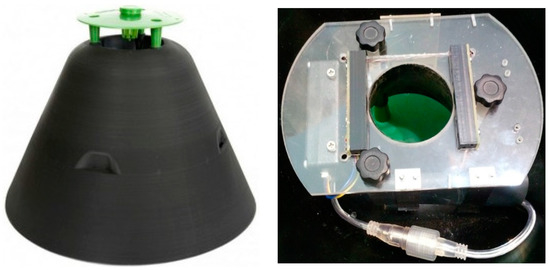 Stored-grain pitfall traps are typically used for monitoring several species of stored-grain beetles (Coleoptera) in silos, warehouses and processing plants [31]. They are placed inside the bulk grain near the surface (Figure 3). The cone-shaped device is made of clear plastic and has a removable perforated lid, which allows insects to enter, but not escape. As in the case of the funnel trap, various pheromone lures targeting different species may be used.