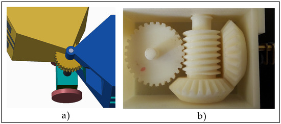 Worm and Bevel gear assembly (a) Worm gear location in HexaMob robot; (b) 3D-prototype for testing.