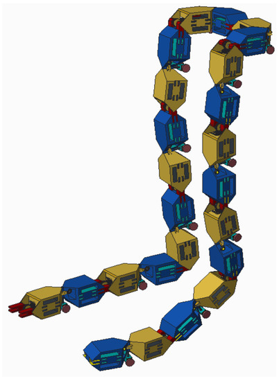 - Jorgensen, M.W.; Ostergaard, E.H.; Lund, H.H. Modular ATRON: Modules for a self-reconfigurable robot. In Proceedings of the 2004 IEEE/RSJ International Conference on Intelligent Robots and Systems (IROS) (IEEE Cat. No. 04CH37566), Sendai, Japan, 28 September–2 October 2004; Volume 2, pp. 2068–2073. [Google Scholar]