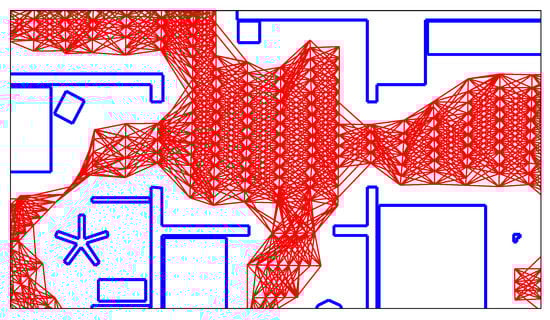 Methods from the first category commonly use a bottom-up approach: Here, a classifier determines which type of room surrounds a given place, based on sensor data the robot recorded at that point. For example, Mozos et al. [] distinguish corridors, rooms, and doorways by applying a boosting classifier to features extracted from laser range scans. The authors apply this scheme to simulated scans generated from an occupancy grid map to classify the map’s cells. Connected cells with the same label are then joined together into regions, thus accomplishing room segmentation.