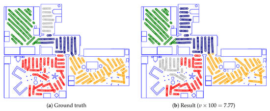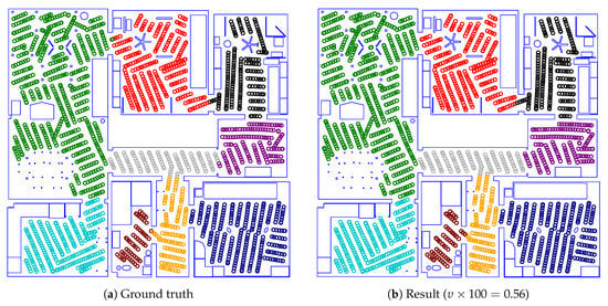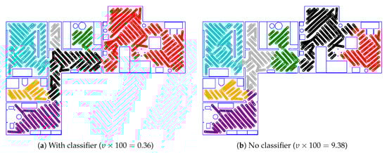 Improving the classifier itself should also result in a more accurate room segmentation. Extending the parameter search spaces beyond those listed in Table 4 would be a simple first step. Since we already performed extensive searches, we are uncertain whether this would offer meaningful improvements. Using different SVM variants or kernel functions might also improve the classification result []. Finally, completely different types of classifiers could be evaluated. Due to the large number of classifiers described in the literature, this is a considerable task, and not covered in this work.