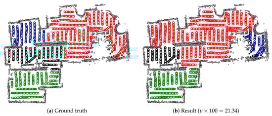 It would be interesting to view these results in comparison to those achieved in other works (Section 1.1). However, like ours, these methods make specific assumptions regarding the robot, map structure, and sensor data. For example, the methods presented in the survey by Bormann et al. [] operate on occupancy grids with global metric consistency. Our robot does not generate such a map, and we thus cannot directly compare these schemes to our own. Therefore, a meaningful comparison would require specifically modifying and optimizing these methods for a common experimental framework. This is a significant undertaking, which lies beyond the scope of this work.